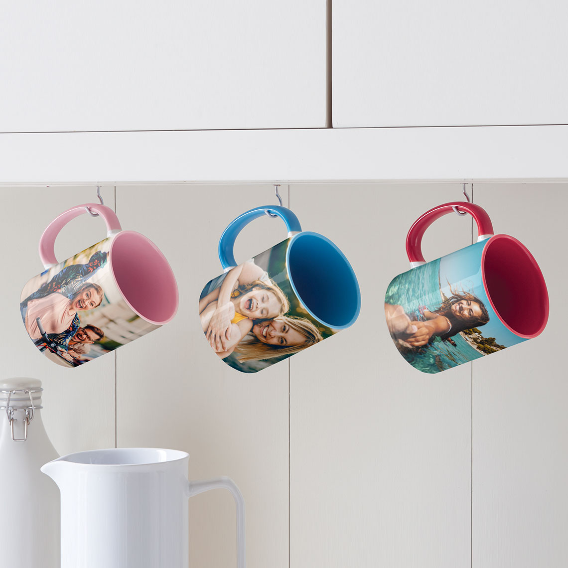 + Free ShippingA standard 11oz size mug that has a color on the handle and on the inside of the mug with plenty of space for your own custom words or image.